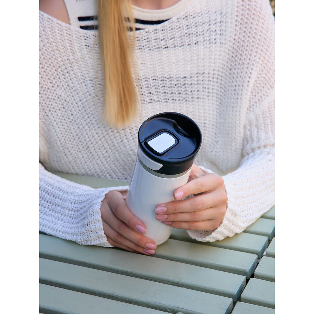 - Специальная система открывания клапана JustPushTheButton: чтобы открыть клапан для питья, нужно нажать боковую кнопку, чтобы закрыть, нужно нажать кнопку сверху крышки