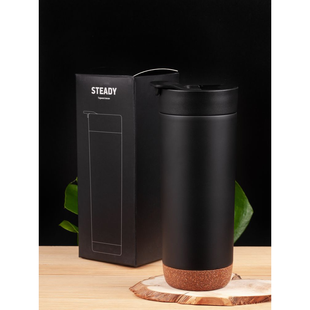 Контраст текстурной пробки на дне и матового покрытия делают термостакан Steady не только практичным, но и стильным подарком.
