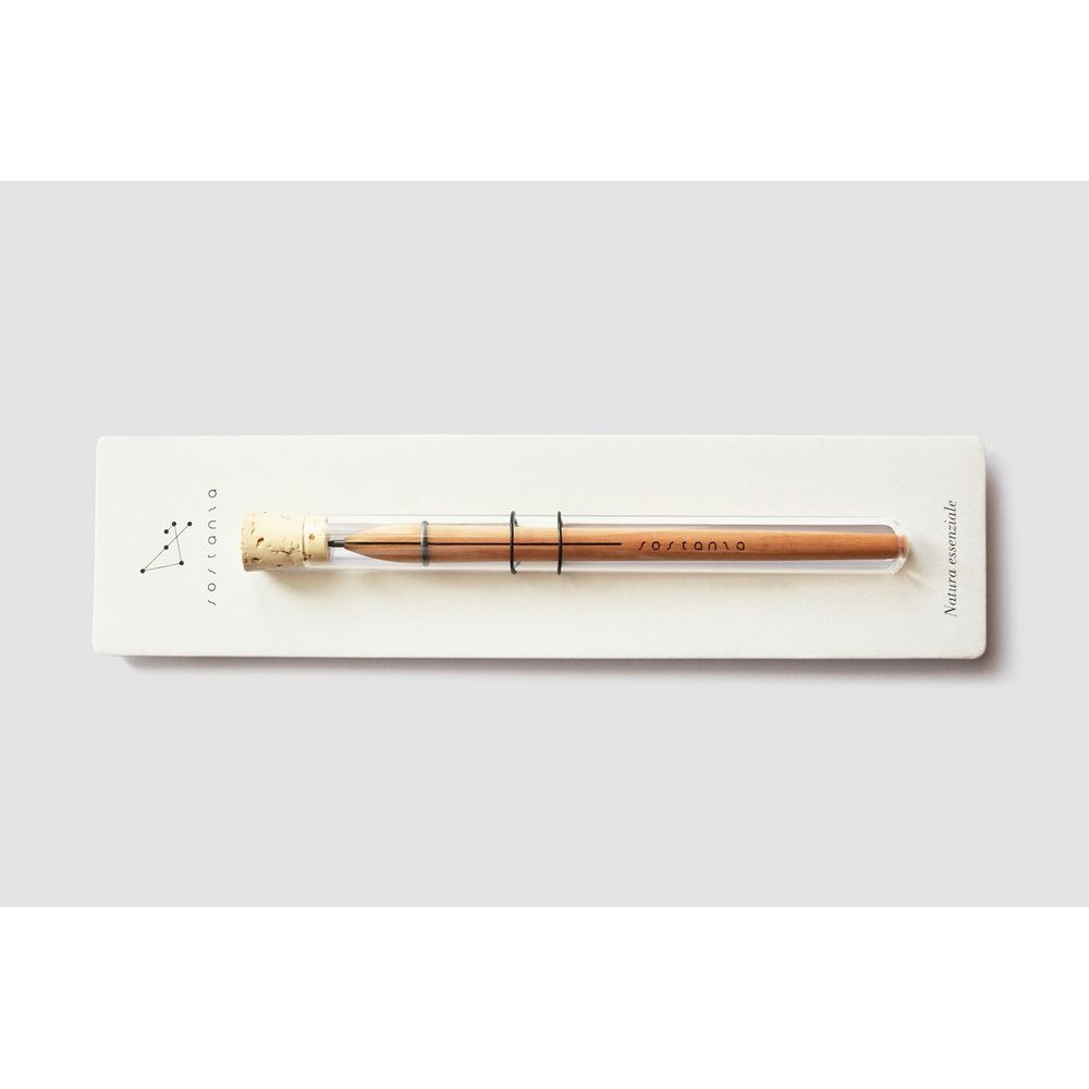 Каждый карандаш Sostanza изготовляется вручную, имеет сменный грифель и поставляется в прозрачной стеклянной колбе.