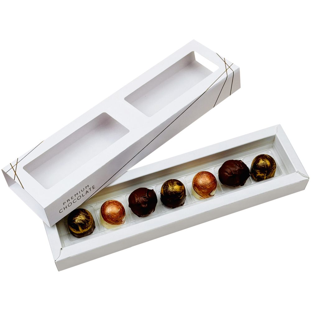 Набор из семи изысканных конфет ручной работы — это настоящее произведение кондитерского искусства, способное удовлетворить самые утонченный вкус. Каждая конфета в этом наборе — не просто лакомство, а целая история, скрытая в тонкой оболочке шоколада.