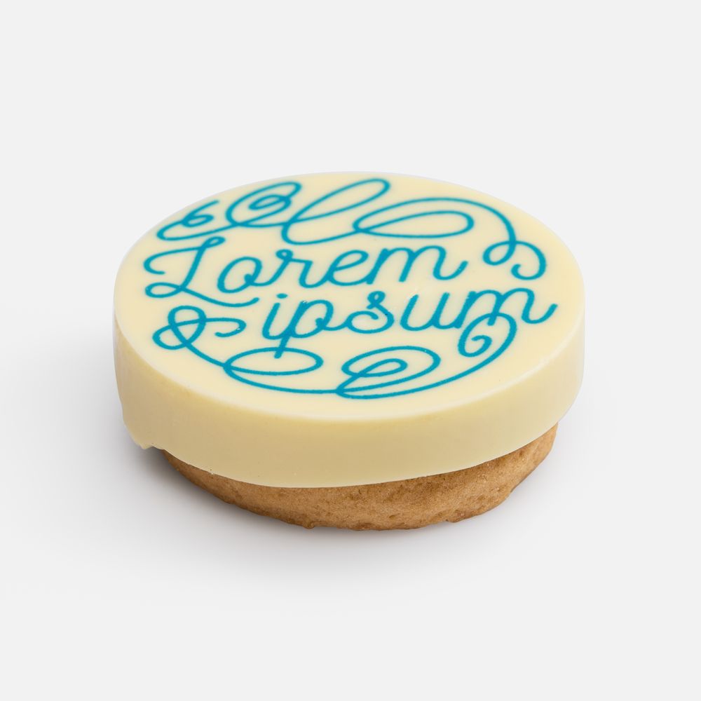 Песочное печенье, глазированное натуральным белым шоколадом.