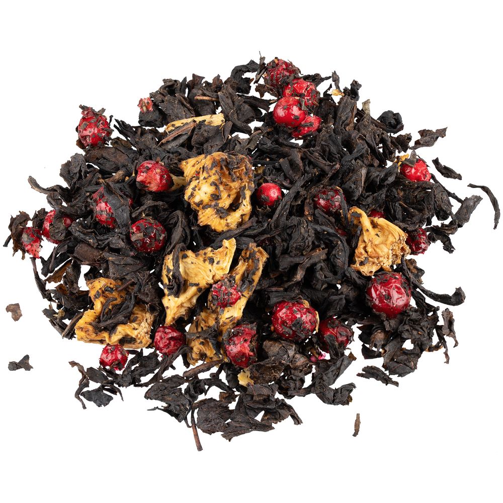 Состав: чай черный с ананасом и соком ананаса (чай черный байховый крупнолистовой, кусочки ананаса, сок ананаса), брусника сублимированная, ароматизатор натуральный «Брусника».