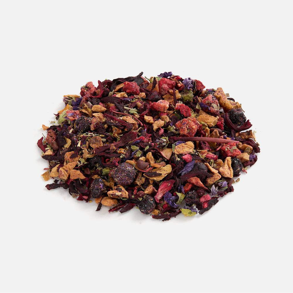 - Чай на основе каркаде и ягод «Ягодная поляна» Состав: каркаде, кусочки яблок, ягоды брусники сублимированные, ягоды черники сублимированные, кусочки малины сублимированные, кусочки клубники сублимированные, цветы мальвы, лист ежевики, ароматизатор черники и малины.