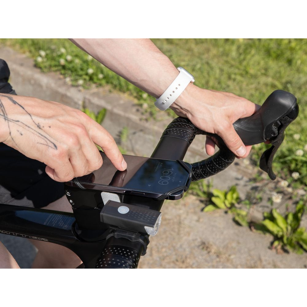 С помощью короткого ремешка на липучке можно закрепить телефон на руле автомобиля или велосипеда, а также на спортивном тренажере, бутылке для воды, предплечье или даже ручке детской коляски. Длинный ремень позволит закрепить телефон на поясе во время бега или прогулки. Также на нем можно разместить мини-сумку для хранения мелочей — получится комплект в виде поясной сумки и держателя для телефона одновременно.