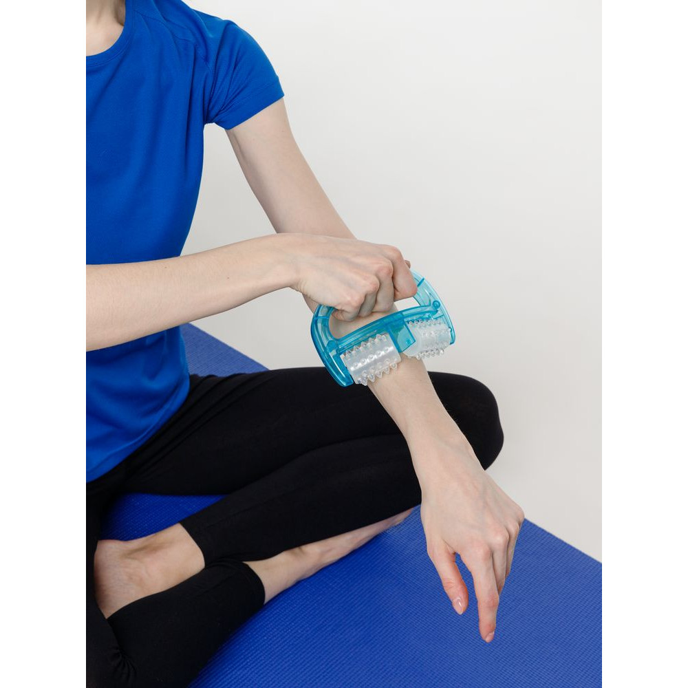 Эргономичная ручка выполнена из прочного пластика. Массажер комфортно лежит в ладони, для пальцев на ручке предусмотрены специальные углубления для удобного хвата.