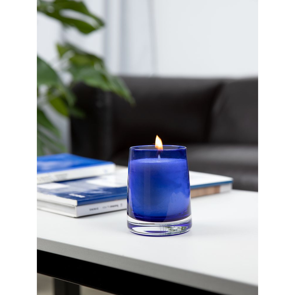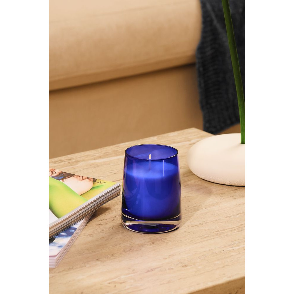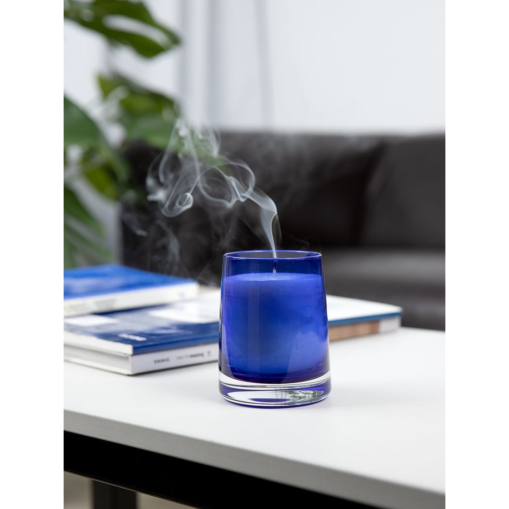 Ароматическая свеча Fragnola в изящном подсвечнике из цветного стекла идеально подходит для создания уютной атмосферы в доме и станет отличным дополнением к любому интерьеру.
