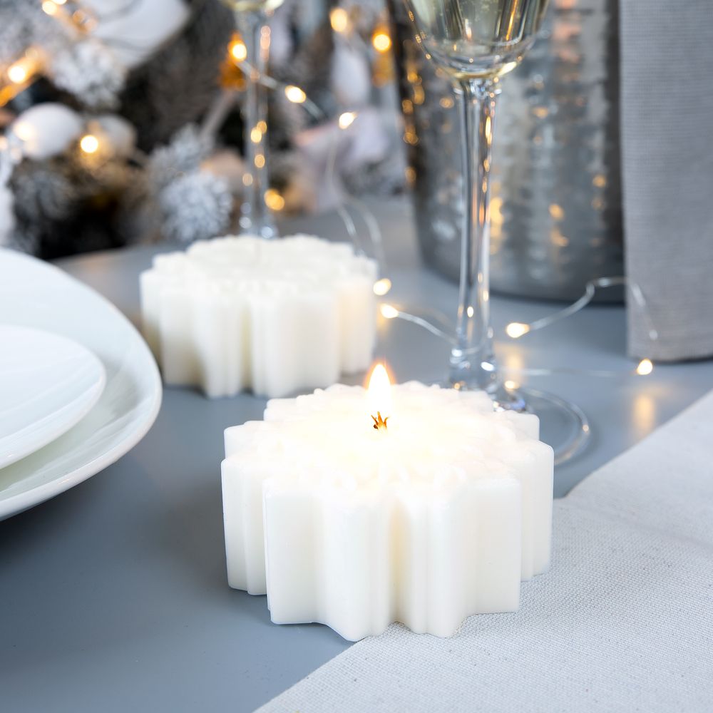 Милые большие свечи-снежинки — само воплощение уютной зимы вопреки всем метелям. Чтобы искрящегося снега и радости было еще больше!