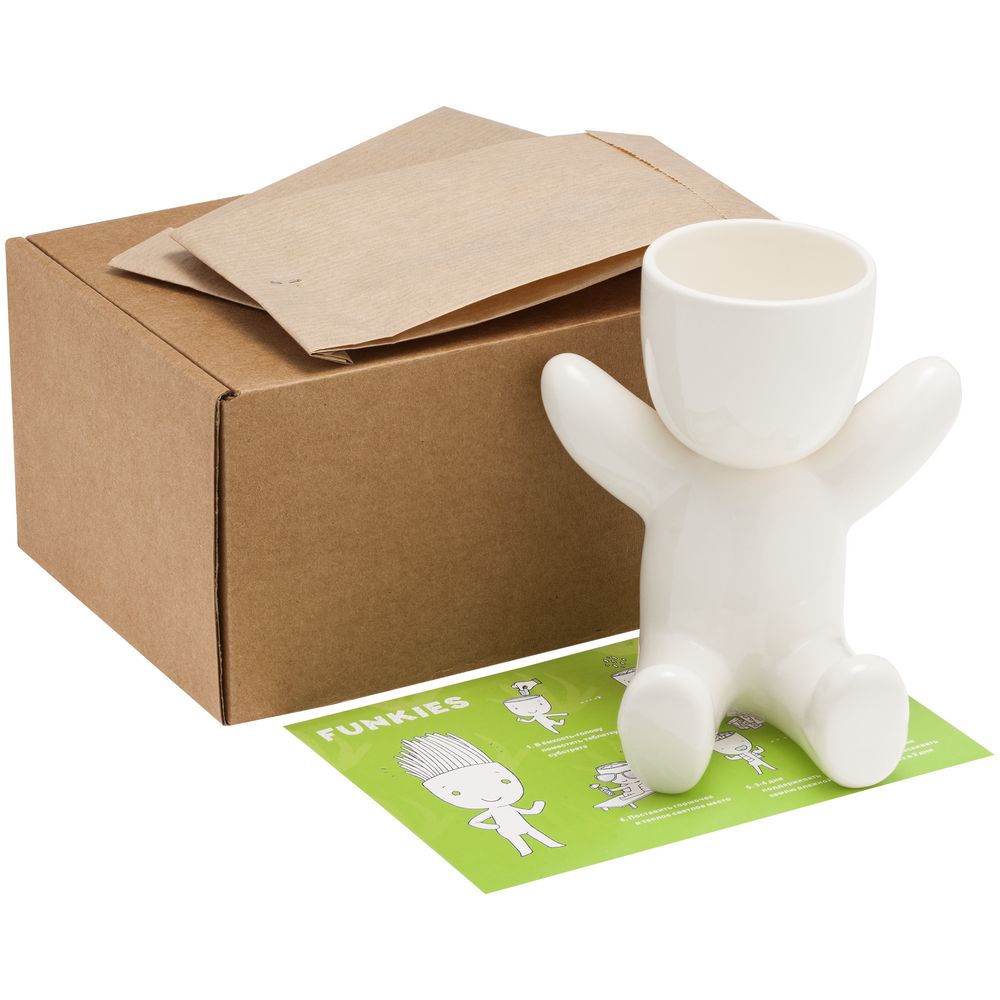 Фигурки Funky — экологичное украшение интерьера, кусочек зеленого газона в офисе или дома. Посадите волосы-травинки и наблюдайте, как меняется человечек. Вы можете сделать ему стильную стрижку, добавить настроения, нарисовав маркером лицо, — и поменять образ, когда трава снова подрастет.
