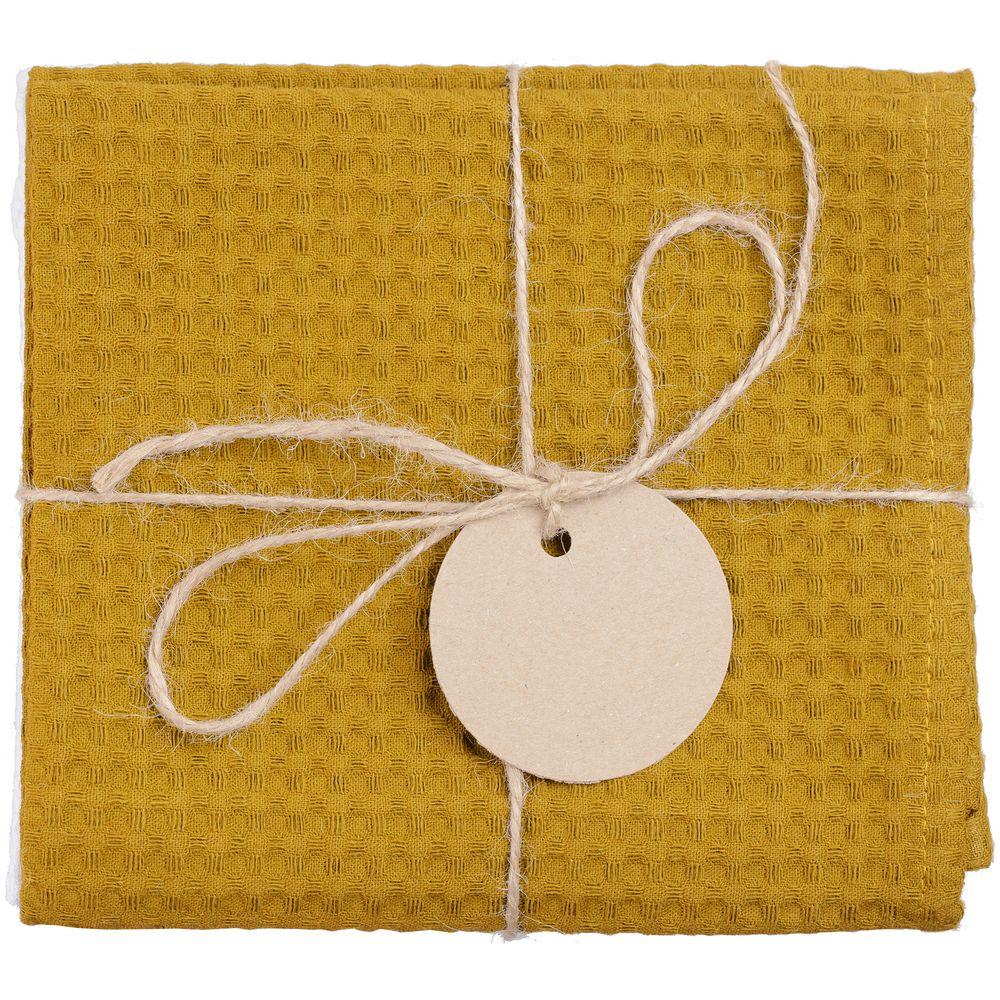 В набор входят 2 кухонных полотенца, перевязанных бечевкой с картонной биркой, на которую можно нанести логотип.