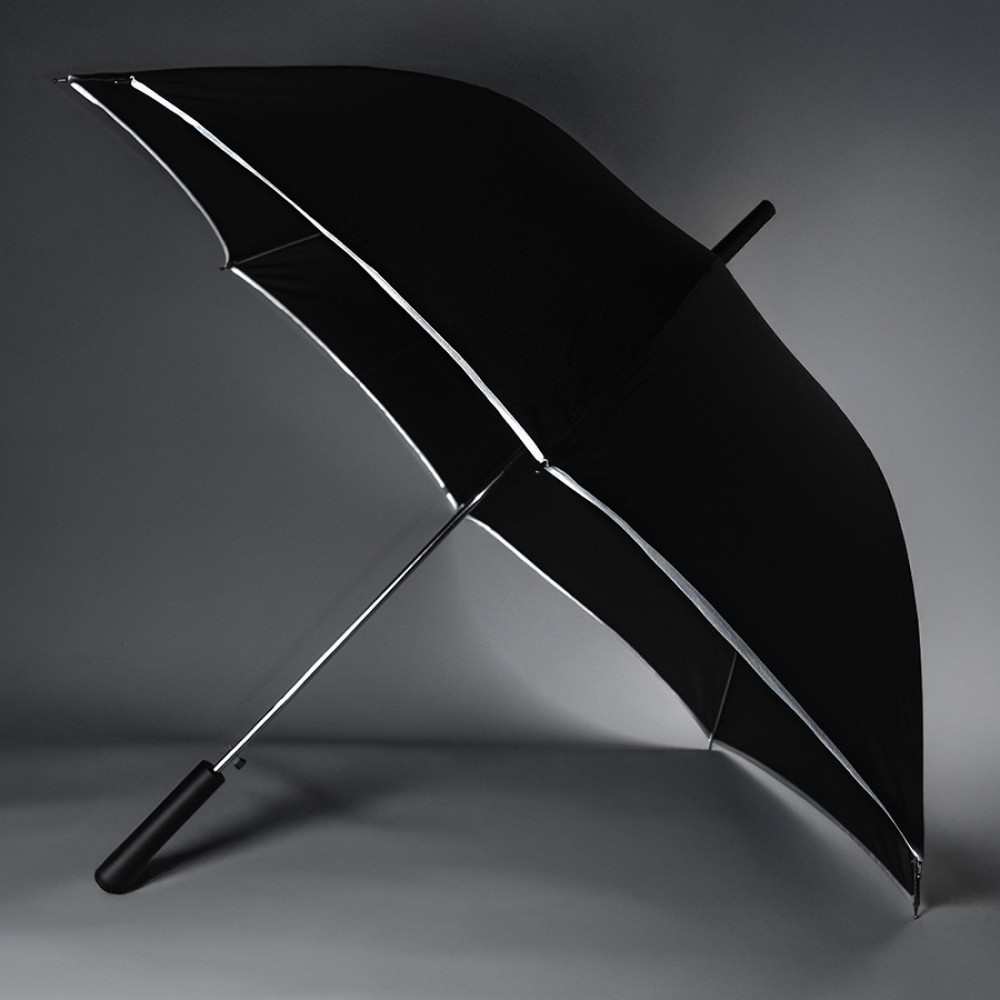 Параметры: Зонт-трость "Reflect", механический, эпонж, чёрный со светоотражающей окантовкой в чехле с ручкой
