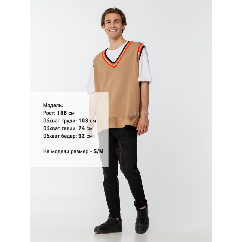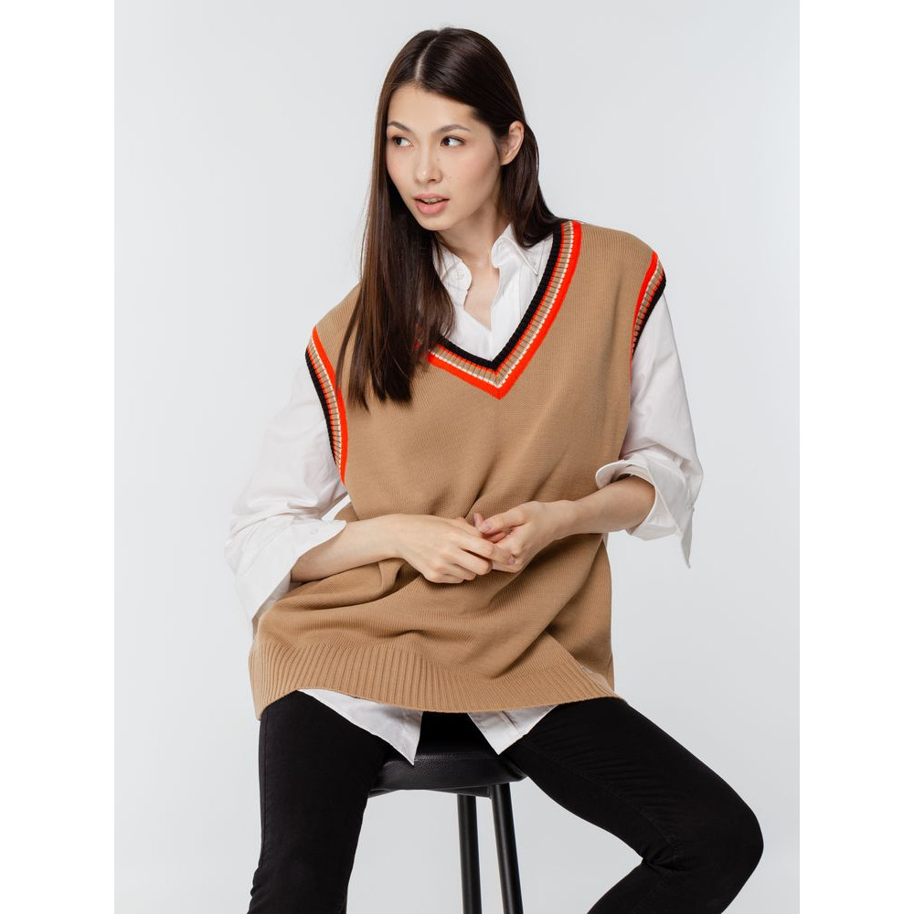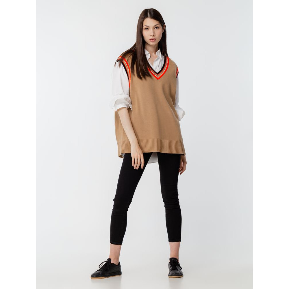 Оверсайз жилет с V-образным вырезом и цветной отделкой.